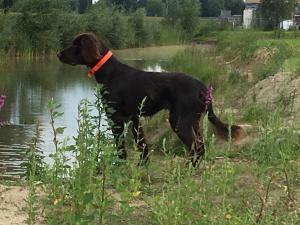 Op 28 Juni was het dan zover om aftereizen naar Duitsland voor de Dekking met Lucky vom Heesenhof Deze reu heeft mooie resultaten behaald en wordt ook met grote regelmaat ingezet voor de jacht HD:A VJP 76, HZP 189, HZP Schorlemer 175, VGP 334 Exterieur: V-V-V. Deze combinatie voldoet voledig aan de eisen van de Nederlandse vereniging langhaar. Uit deze combinatie zijn 4 pups geboren 3 teven ( 2 Hellschimmels en 1 donkerschimmel ) en 1 reutje ( Bruin ) ( na een paar dagen overleden )